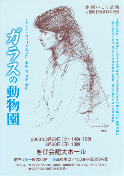 テネシー・ウィリアムズ 作 栗原省 台本・演出 ![]() 3月29日(土)14時・19時 3月30日(日)13時 きび会館ホール 前売り 一般2000円 高校生以下1500円 (当日は500円増) |