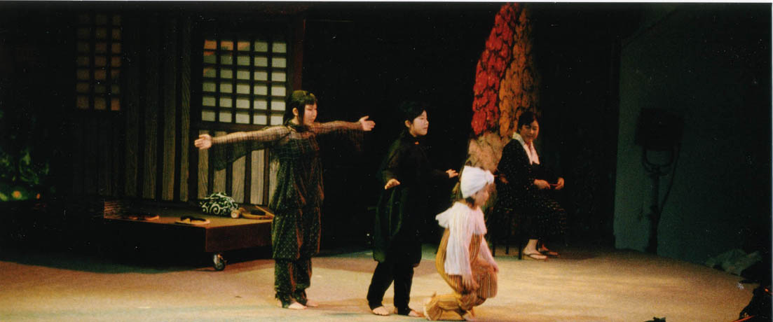 | 春のガラスの動物園公演の後、次に瓜子姫とアマンジャクを公演すると決まった当時は、私はまだこの劇を理解できないでいた。 もともと瓜子姫とアマンジャクはラジオ劇の台本だから、音による表現が多く、音響・効果を担当する私にとっては結構たいへんだが、またやりがいがあるだろうな、ということぐらいは思っていたが、音響・効果のはっきりしたプランはまだ持てず、とにかくこの劇を理解する努力をすることにしていた。 初め頃は、本を読んでも短くて単純な、唄に例えれば簡単なわらべ歌とでもいうような感じがして、明るい劇ではあるが、これをがどうして観客に感動を与えられるのだろうか、ということを思っていた。 ガラスの動物園の重く深い感動を経験してまだ日が浅い頃であったので、おそらく私はガラスの動物園と比較して、短く、シンプルな物語を読んでそのように感じたのだろうと思う。 しかし、栗原主宰が木下順二の原作にプロローグ部分を追加し、公演のための台本ができ、本読みから始まる稽古や、いろいろな準備作業が実際に始まってみると、本を読んだだけでは思いもよらなかった、とてもダイナミックな劇の姿がだんだん見えるようになり、わからなかったところがわかるようになってきた。 稽古が進むにつれて、この劇も次々に新たな展開があって、そのどれもがとても面白く、また芸術的で、観ていても飽きることのない、いい芝居になるだろうと思えてきたのだが、結果は、やはりそのとおりに素晴らしい劇になって、観ていただいた沢山の皆さんから高い評価を頂くことになった。 私は、今までもそうであったが、改めてこれが「栗原演出」のなせる技なのだなと、つくづく思った次第である。 私は劇作りの中で、音響・効果という部分を担当しているが、キャストや他のスタッフのみんなと共に稽古や道具の作成と同時進行で進めてゆかなければうまくできない。 始めに考えていたプランが稽古で試してみるとうまく行かなかったりすることもしばしばで、いつも皆さんに迷惑をかけながら試行錯誤を繰り返し、仕上げに向かってゆくことになるが、今回もやはりそうだった。 アマンジャクが戸をたたいたりひっかいたりする音の録音では板をたたいたりひっかいたりしてもらった千永実、佳弥乃、優海に、そまの権六と山父の声の録音では何回もの録音失敗で別院清さんと栗原先生に大いに迷惑をかけてしまったが、疲れにもかかわらず辛抱強く付き合って下さって本当にありがたく思った。 また、山父の舞踏の音楽では仕上げ作業をする内に、はじめ頃とはかなりイメージの違う音楽になって行き、手塚さんを戸惑わせてしまった。 音楽では他にも、始めの頃私のミスで1小節足りないものを川崎ゆかりさんに渡してしまったり、作曲の辻さんにも何度も打ち込みミスのある音楽を聞かせてしまったりもした。 しかし、なんといっても最大だったのは、機織りの音と山彦の声で、私の試行錯誤のために稽古の度に違う音を聞かされることになってしまった瓜子姫とアマンジャクの栗生香林への迷惑だったと思う。 それもこれも、みんなとの劇作りでの私なりのよい音作りのための格闘であった訳だが、迷惑を被った皆さんにはどうかお許しいただきたいと思う。 おかげで、必死で取り組んできた結果、最終的にはなんとかこの劇にふさわしい音響・効果を作り出せたのではないかと、今では思っている。 私が演劇の音響で大切にしていることのひとつとして、劇の中で必要とされる音の質感をいかに的確に出すかということがあるが、この劇では、秋の深い山の中の澄んだ空気感のようなものを、効果音、音楽ともに舞台に出現させることを徹底的に追及したつもりだ。 しかしそれにしても、あのじめじめとした蒸し暑い真夏に、汗をかきかきヘッドフォンを耳にあてながら、秋の山奥の澄み切った空気と、そこに響く美しい山彦たちを想像し続けることは相当な努力を要することだった。 技術的には、山彦のために6秒以上のロングディレイを使い、ひとつひとつのセリフ毎にそのディレイタイムを現場で切り替えていったり、機織りの音作りでは早くなったり遅くなったりしつつも、音楽とリズムを合わせるためにサンプラーとシーケンサーの同期をとったりと、初めて試すことが多くて、大変なことも多かったが、それがまた私のチャレンジ意欲をかきたててくれて、大いに楽しむことができた。 常にワクワクしながらの音響・効果を担当させてもらって本当に良かったと思う。 栗原主宰を始めとして、いっしょに劇作りをしてきた皆さんに本当に感謝したいと思う。 この瓜子姫とアマンジャク公演をもって、劇団いこらは解散することになるが、私はまだ実感がわかない。 劇団いこらの40年を主導してきた栗原主宰には、本当にご苦労さまでしたと言わねばならないのだろうが、40年のいこらの歴史の内たかだか10年足らずを中途半端に共にしただけの私には