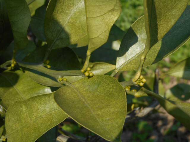 | みかんの実も3〜4cmの大きさに育っています。今年はまあまあ実っ |