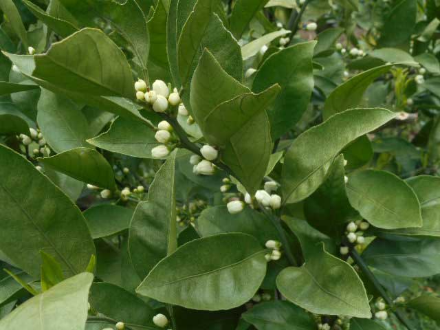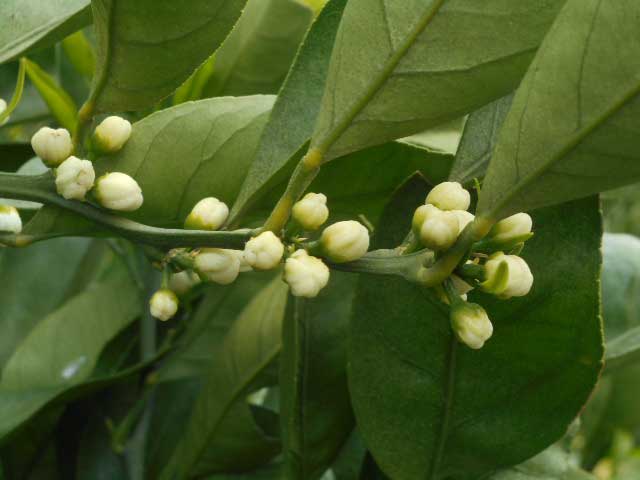 | もうみかんの蕾も大きくなりました。今年も花の数が多いので豊作に |