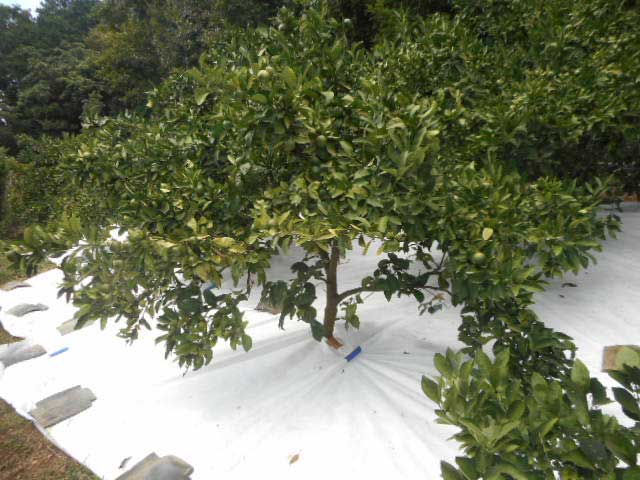 | 仕上げ摘果も終わりました。マルチ栽培中生みかんも少しづつ黄色 |