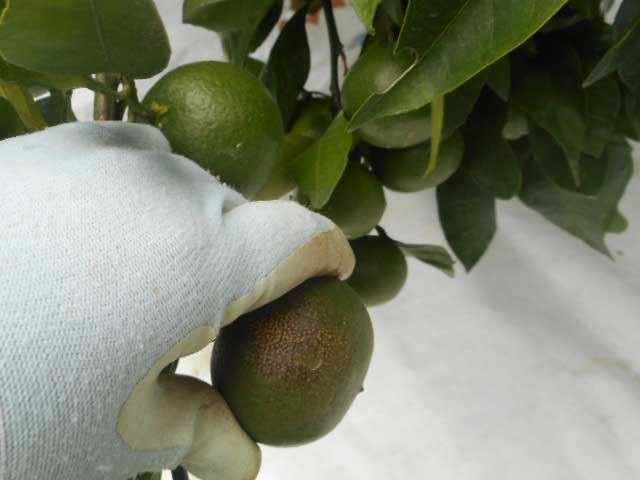 | 少しずつみかん色に染まってきています。露地栽培みかんよりも着色 |
