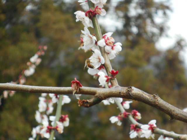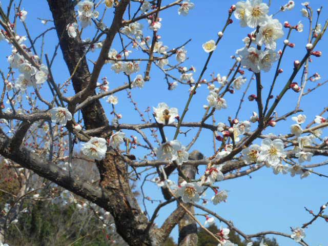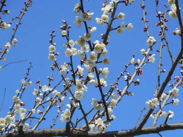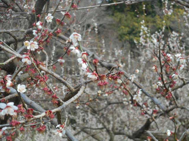 | 満開期を過ぎました。もう梅の花はの枝の先の方にしか残っていませ |