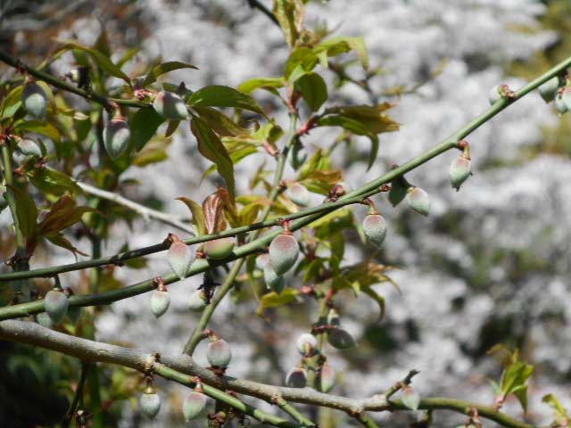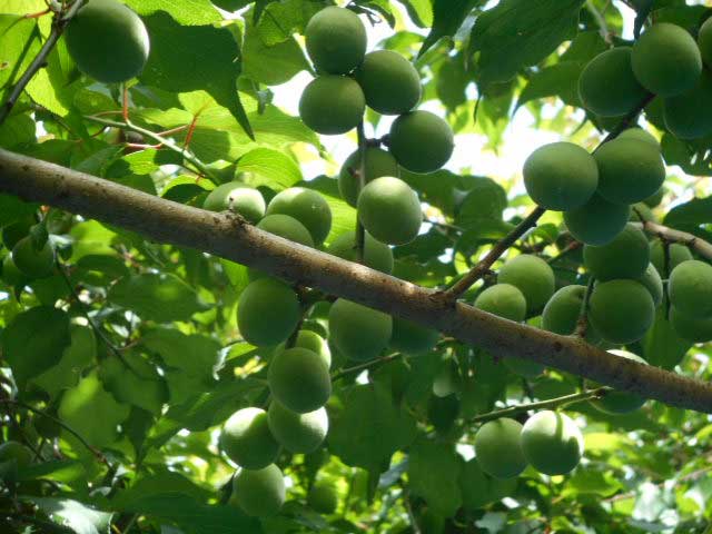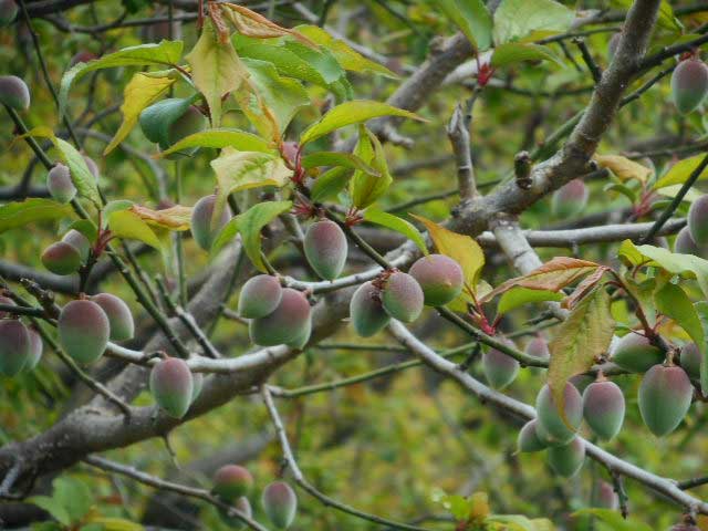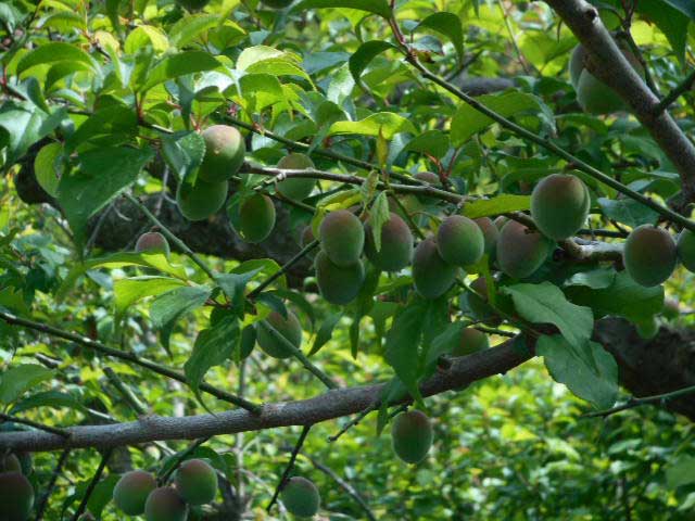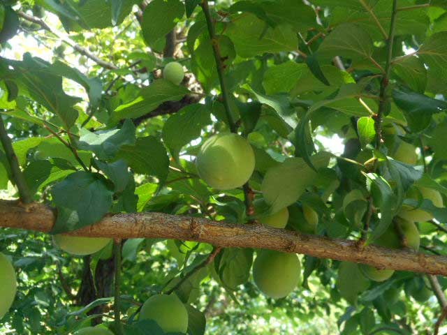 | 前回より2週間後くらい、梅の実は1.5〜2.0cmまで大きくなり |