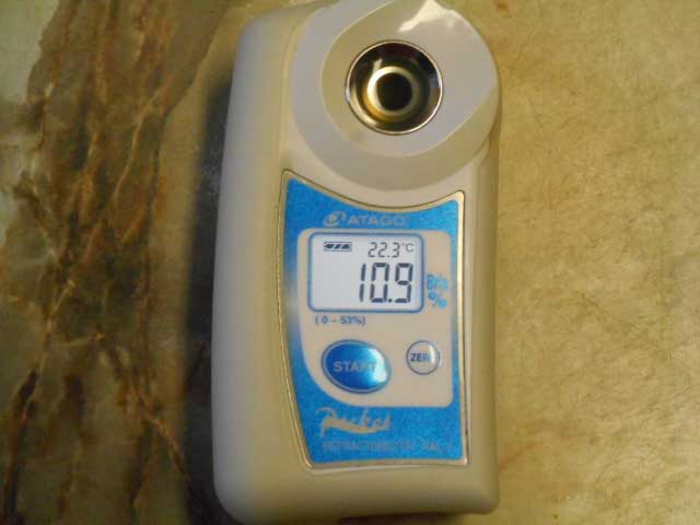 | した。順調に育っていってます。糖度計ってみました。今は10度 |